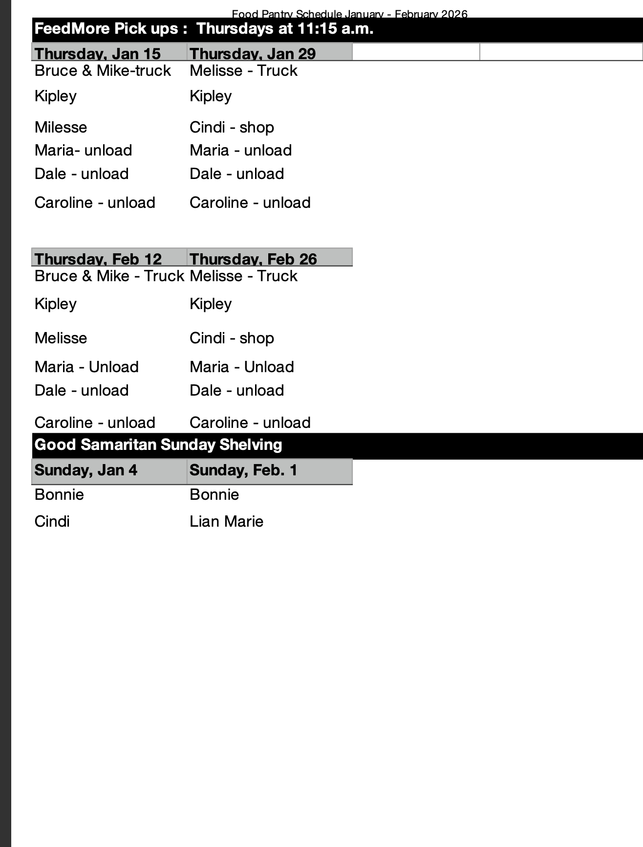 Food Pantry Schedule