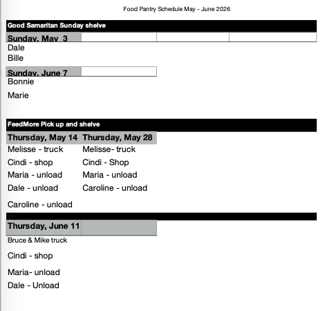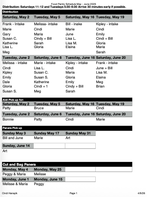 Due to the special election on Tuesday 4/21 our Food Pantry will closed on 4/21 and open on Monday April 20th, from 5:30 - 6:30 pm.